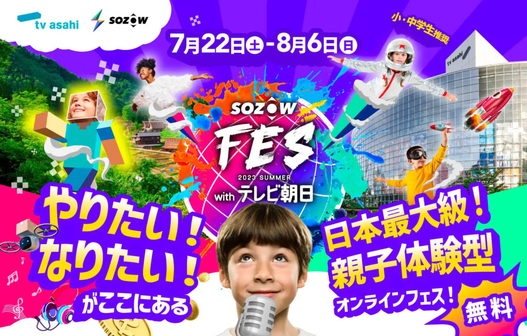 7月22日〜8月6日に開催されるSOZOW株式会社が、株式会社テレビ朝日と共同開催する親子体験型オンラインフェス「SOZOW FES 2023 Summer with テレビ朝日」に、CEO・青木 俊介が登壇します。