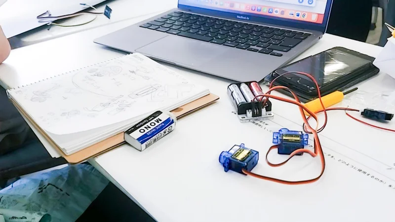 ロボットを作るにあたり、ツールとして使用したのは教育事業kutikitから発売中の、動きのある作品を簡単に作ることができ、プログラミング体験ができる「ココロキット+」(https://kurikit.ux-xu.com/cocorokit-plus/)です。加えて、モーターやセンサ、スライドするキットなどを用いて動きのバリエーションを増やすことで、より豊かな表現ができるようになっています。