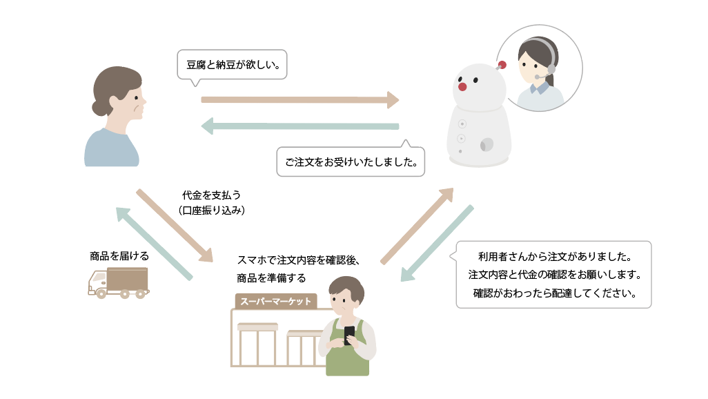 全国各地で高齢化による買い物困難者が増加しており、特に車社会の地域では高齢者の免許返納などにより外出手段が限定的になってしまいます。一方でスーパー側は配送サービスを整備していますが、スマホやPCでの注文が一般化しているため、高齢者には利用ハードルが高く、利用者がなかなか増えない現状があります。